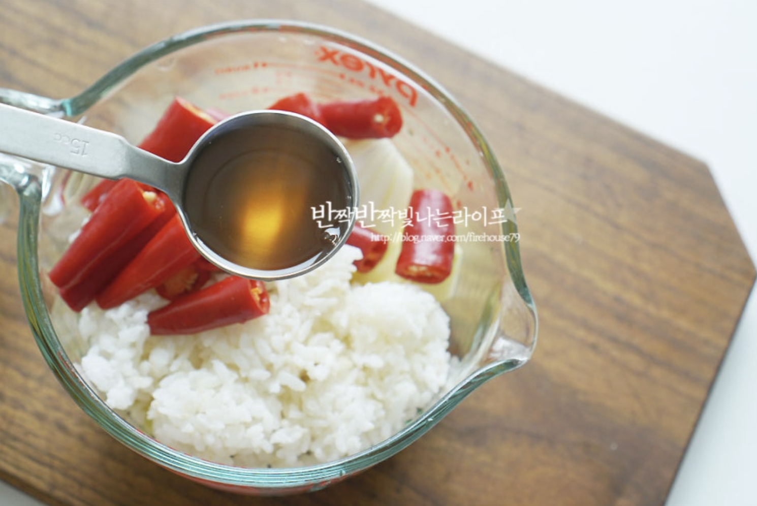 찬밥 1/3공기, 액젓(멸치/까나리) 5~6 큰 술